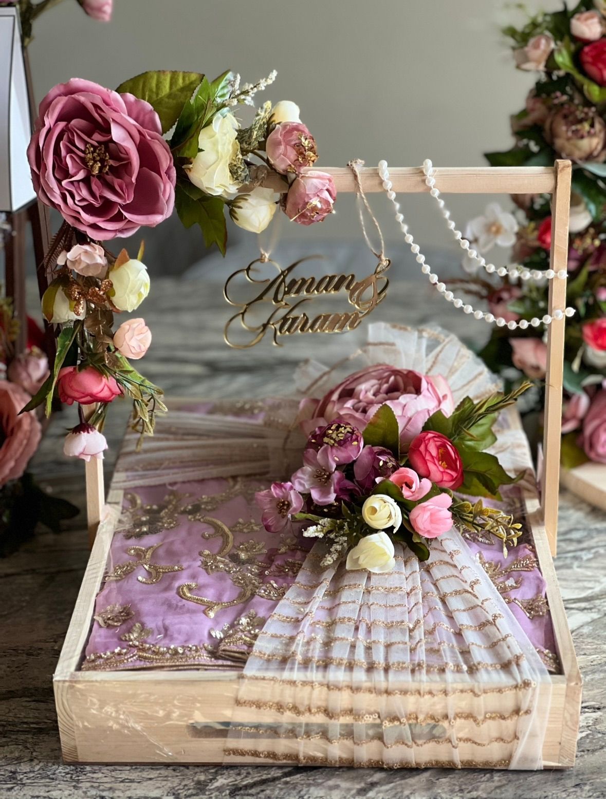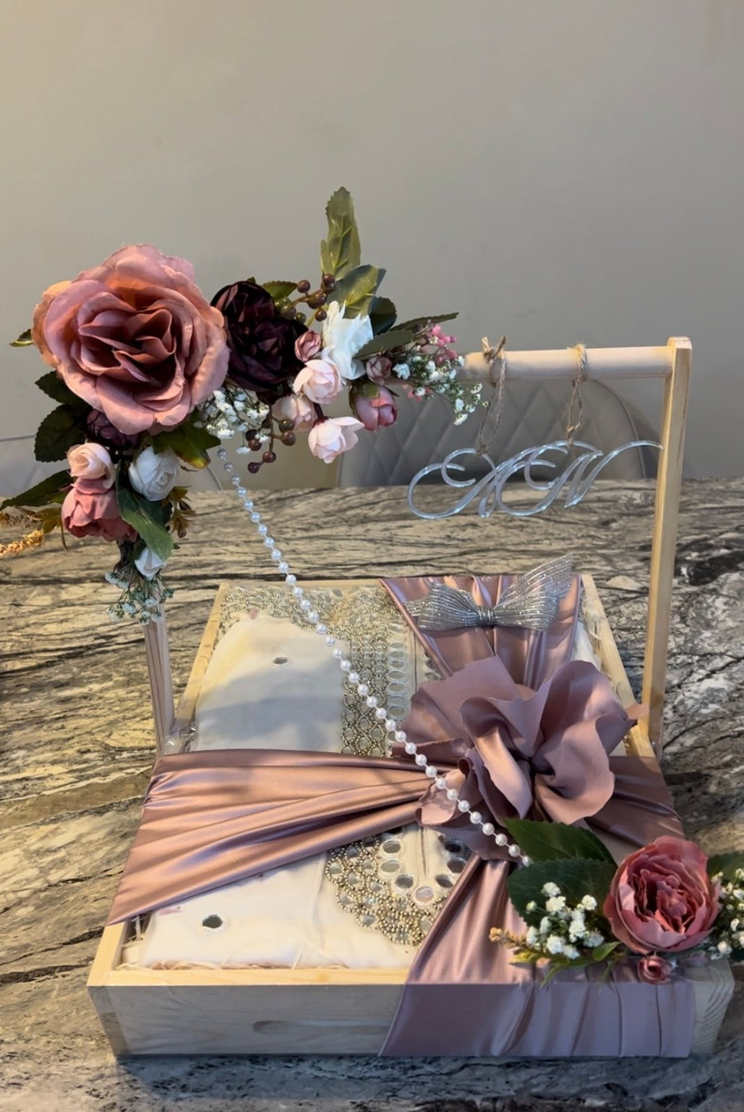 The Handle Suit tray can hold one heavy Outfit. The Floral Decoration is Customizable